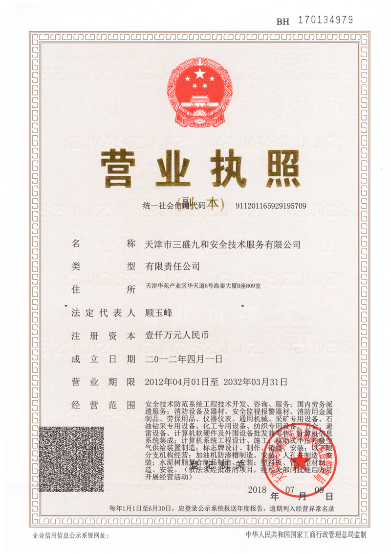 天津市三盛九和安 全技術(shù)服務(wù)股份有限公司