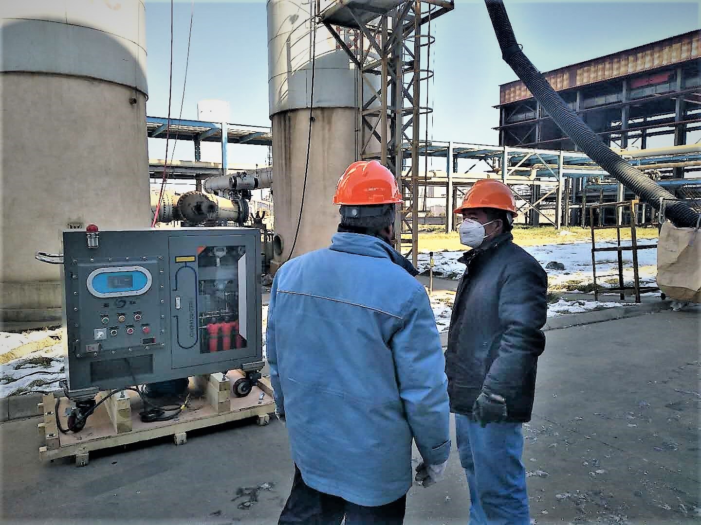該公司作業(yè)環(huán)境為氯堿工業(yè)更換催化劑,通俗說就是在充滿氮氣(人體如吸入過量的氮氣,容易引起缺氧窒息,心跳停止而死亡。)的窒息環(huán)境下更換催化劑,工作環(huán)境十分危險,我公司設(shè)備連續(xù)送風(fēng)式長管呼吸機(jī)因可以長時間提供清潔空氣而成為了該環(huán)境作業(yè)人員的救星,為他們的生命提供了堅實的保障。