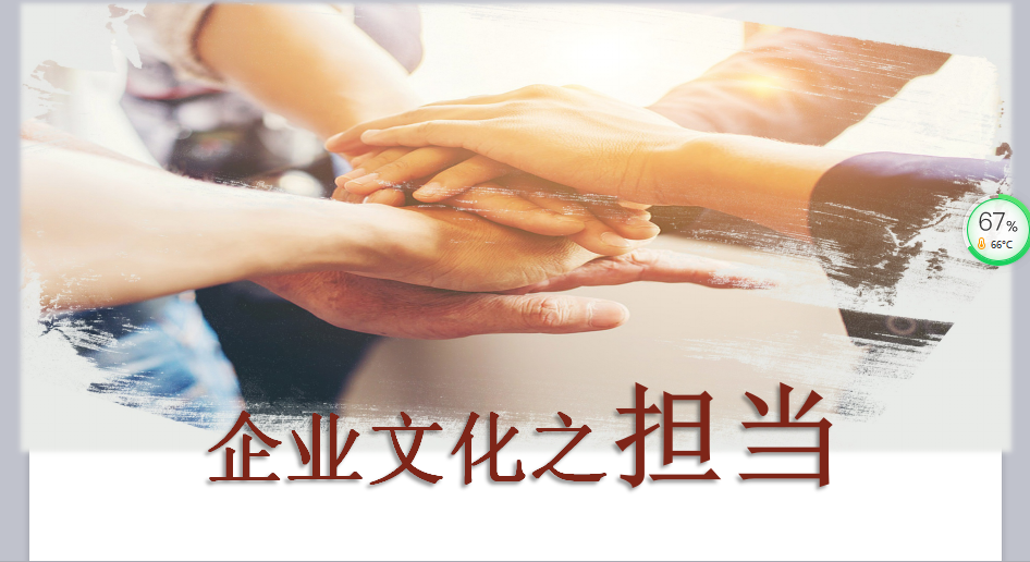 2020年4月3日,公司行政部組織了《員工擔當意識》培訓。培訓首先結(jié)合新冠病毒疫情帶給*,社會及公司的影響做了介紹,突出以鐘南山院士為首、以及眾多無名英雄在國難當頭時挺身而出,勇于擔當,為國分憂的大愛精神。結(jié)合公司所有員工,應該在公司經(jīng)營面臨*的困境時勇于擔當,為公司分擔風險的精神,也是公司企業(yè)文化的較佳體現(xiàn)形式。